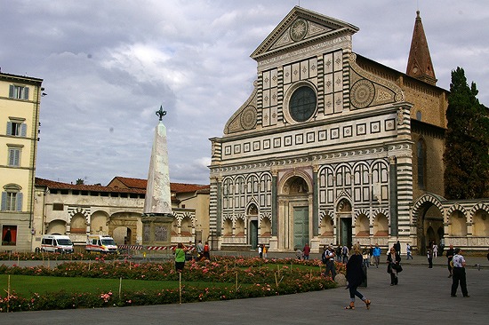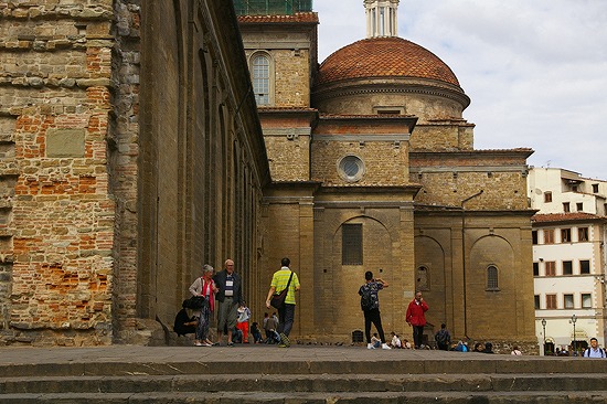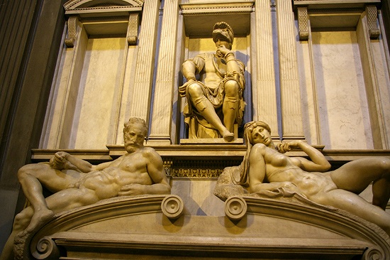 ![]() (フィレンツェ、シニョリーア広場) 九月廿八日(月)半陰半晴。六時半起床、七時に朝食、食堂からの帰りにイタリア人女性客とすれ違ひざまチャーミングな微笑を送らる。イタリア女は愛嬌づきたるもの多し。 この日はフィレンツェへ日帰り旅行をなさんとて八時にホテルを出づ。テルミナ駅に向ふ途中ドイツ大使館前に機関銃を構へて警備をなすもの二名あり。迷彩服を着たるところからして兵士と思はる。道の反対側よりこれを撮影せんとするに血相を変えて撮影を止めよと叫ぶ。余蒼惶としてその場を去る。大使館の警備は日本にてもものものしけれど機関銃を構へたる兵士を見ることはあらず。欧州の治安事情の一端を見るべし。 駅に至る頃便意を催したれば、地下の公衆便所にて用便す。利用料一ユーロなり。パリの公衆便所より安し。 イタリアの駅は日本の如き改札口を有せず。改札は車内にてなすなり。また行先ごとの専用ホームを決めをらず出発直前にホームの割当をなす。空港の如くなり。 ![]() (車窓からの眺め) 八時三十五分発ヴェネチア行の特急フレッチャアルジェントに乗車す。ローマを出でて後フィレンツェまでノンストップなり。窓外の景色を眺むるにローマを出でて二十分も経れば田園地帯なり。緩やかなる丘陵広がり、たびたびトンネルをくぐる。トンネルをくぐるたびに潅木の生ひ茂る丘陵地帯の広がるさまを見るのみ。人家集落を殆ど見ず。たまたま集落を見ればそれらは殆ど集合住宅よりなる。イタリアは集落と田園と完全に分離されをるが如し。パリ、ロンドンも集落と田園分離されてありしが、イタリアはそれを上回る徹底振りのやうなり。 ![]() (サンタ・マリア・ノヴェッラ教会の尖塔) 十時五分フィレンツェ着。駅を出づるに眼前にサンタ・マリア・ノヴェッラ教会の建物を見る。この教会はフェレンツェ中央駅の名称に用ひらるるものにてフィレンツェ・ゴシック様式の傑作なり。尖塔の見ゆる部分は建物の背面なり。そこより正面まで百メートルもの規模を誇るといふ。 ![]() (サンタ・マリア・ノヴェッラ教会正面) 外壁をぐるりと回り込んで正面に出づればその前に広場あり。朝市の類催され様々なもの売られてあり。天は陰りをれど長閑な雰囲気なり。そこにて一呼吸ついて後バンキ通り、ジッリオ通りを経てメディチ家礼拝堂に至る。 ![]() (メディチ家礼拝堂) この礼拝堂はサン・ロレンツォ教会の付属施設として建てらると言ふ。君主の礼拝堂及び聖具室よりなり、聖具室にはミケランジェロの曙以下一連の彫刻群を収む。聖具室そのものもミケランジェロの設計なり。美術史上高い価値を有するとありセキュリティチェックは空港のそれと同じレヴェルなり。 ![]() (ミケランジェロの彫刻、曙と黄昏) この聖具室にはメディチ家の当主ロレンツォ二世及びジュリアーノの墓を収む。しかしてそれぞれの墓の上に墓主の像と男女の像を配置す。ロレンツォ二世は瞑想する姿にあらわされその下に女性像曙及び男性像黄昏を配す。 ![]() (ミケランジェロの彫刻、昼と夜) またジュリアーノ像の下には男性像昼及び女性像夜を配す。黄昏といひ夜といひメディチ家の没落を暗示するが如しとの見方もある由なり。 ![]() (サン・ロレンツォ教会) 礼拝堂を出て東へ回り込めばサン・ロレンツォ教会の石畳あり。人をして歴史の厚みを感ぜしむ。 ![]() (フィレンツェの路地) また、このあたりにはシックな雰囲気の路地縦横に走り、散策するには事欠かざるなり。 |