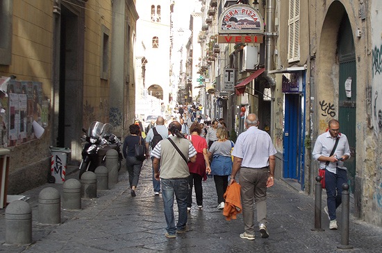 ![]() (ベリーニ広場) 考古学博物館前のマリア・ディ・コスタンティノーポリ通りを歩み行けばややしてベリーニ広場に至る。ここより南東方向ガリバルディ広場へ至る一体をスカッパ・ナポリと言ふ。ナポリの下町にして同時に歴史地区と言はるる地域なり。庶民的雰囲気がいかにもナポリらしいとて映画にもたびたび描かれ来れるなり。 スカッパ・ナポリ地区はベリーニ広場の西ダンテ広場より東に延びるトリブナーリ通りを北辺とし、その南に平行して走るビアージョ・ディ・リブライ通りを南辺とする平行四辺形を中心にしてその周囲を併せたかなり広範囲の地域なり。この二つの通りもさることながらそれに交差する多くの道沿ひに古建築櫛比し独特の雰囲気を漂はせをるなり。映画などにて特に名高くなりしは通りの両脇より垂れ下がる洗濯物の眺めなり。天晴れ渡る日には無数の洗濯物風になびきある種の壮観を呈する由なり。余らが通りがかりし時は午後の押し詰まれる時間帯にて夕闇の迫らんとする頃相なれば大部分の洗濯物は屋内に取り込まれて見えざりき。 ![]() (トリブナーリ通り) トリブナーリ通りを歩みつつ両脇の店を物色す。喉が渇きたればソフトクリームを食ひたくなりしが売る店を見ず。とある路上の店にてレモナーデのメニューを見かけたればこれにて我慢することとす。席に座せば早速亭主出てきて注文をとる。余レモナーデを注文す。亭主曰く、うちのレモナーデは手づから絞りたてで世界一おいしいですよと。余ジェラート(ソフトクリーム)つきのレモナーデはなきやと重ねて問ふにジェラートはございませんと言ふ。それでもよろしいと答ふるに亭主やがてレモナーデを運び来る。頗る美味なりき。 ![]() (スカッパ・ナポリの横丁) トリブナーリ通りとビアージョ・ディ・リブライ通りを結ぶ幾多の通路にはそれぞれ特徴あり。狭小かつ仄暗き道あり、また教会堂の刳口を貫きて通るもあり。小店の出たる道もあれば住居の入口のみ開いたるものあり。 ![]() (スカッパ・ナポリの洗濯物風景) 横丁の中にはいまだに窓より洗濯物のぶらさがりて見えしものもありき。 ![]() (ビアージョ・ディ・リブライ通り) ビアージョ・ディ・リブライ通りを歩む。この通り沿ひはトリブナーリ通りに比して路上のカフェテリア少なきやうに見えたり。道幅は変はらざるなれど小広場少なきがためなるべし。道は石を以て敷かれ頗る汚し。道を掃く者あらざるがためなり。余一軒の店の前を箒もて掃く者を見かけしが、掃く人塵を回収せず。ただ他人の店先に掃き寄せるのみ。これには唖然とせしめられたり。 ![]() (ガリバルディ広場のガリバルディ像) 日の暮れかからんとする頃ガリバルディ広場に戻る。ガリバルディはイタリア統一の英雄にしてイタリア人の敬愛すること甚だしき人物なり。日本の西郷さんと似たるところあり。大業を成就してしかも奢らず。いはんや栄誉を求むることなし。 列車の出発まで時間の余裕あればいづくかのレストランに入り夕餉をなさんと欲す。ガイドブック記載のとある店を訪ねたるところ開店まで間があると言はる。その隣に中華料理屋ありしが、これもまた開店まで間があると言ふ。駅近くのブファロなるレストランに入りぬ。 このレストラン味も雰囲気もなかなかなりき。トマトのパスタとシーフードのリゾット、それにサラダをつけて赤ワインを飲みたり。 帰路の列車はナポリ始発七時三十発のフィレンツェ行特急列車なり。疲労と酔ひ重なり席に座すやたちまち眠りに陥る。そのうち何者かに肩を叩かれて目覚む。見れば我眼前に般若の如き表情せる女何事かをまくし立ててあり。どうやらそこは自分らの席ゆえとっとと消え失せろと言ひをるやうなり。余ははじめドイツ人かと思ひしが言葉からしてアメリカ人なり。 アメリカ女がかくも攻撃的態度をとるはめずらしといへど、この女は三人の子を伴ひてあり。子を伴ひたるメスが攻撃的になるは動物に共通のことなるらし。余その剣幕に煽られて通路の反対側の席に移動せり。 九時近くホテルに戻る。その頃より雨降る。この日は大いに疲労したり。 |