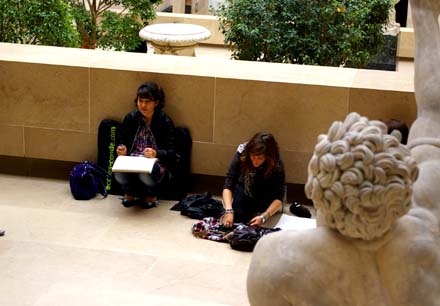 十月四日(月)陰、時に雨。七時半に起床すれば窓外相変はらず暗し。ホテルの食堂は昨日に比すれば人影少なし。九時頃外出して地下鉄駅に至れば、ここは通勤客雑踏して活気を呈したり。 駅前無料の新聞を配るものあり。通勤する者ことごとく新聞紙をひったくりて去る。余もまた一部を受け取りて地下鉄に乗り込みたり。 込み合ひたる地下鉄車内の様子を伺ふに、座席の配置は、扉と扉の合間に対面式のボックス席一式を収め、背もたれの裏側には折りたたみ席をしつらへたり。混雑激しからざるときにのみ客は席に座し、混雑激しき時には、席を畳んで立つなり。 ![]() 車両内には、日本の車両をべたべたと覆ひたるやうなる広告物は、あまり目にせず。しかも中吊り広告の類はほとんどあらず。極めてさっぱりせり。そのかはり、駅構内の隧道部分には巨大な広告物占拠してあり。旅客はいやがおうにも、この広告物を見ずにはすまざるが如くにあつらはれたり。一種の強制認知の法則を応用したるが如し。 ピラミード駅に下車してルーブルに向ふ。途中若き女性の床に寝そべりたるさまを目にす。どうやら貧血発作を起こせしものの如し。傍に介抱するものを見たれば、そのままに去る。 ルーブルは東西に細長き作りにて、平べったきコの字型をなす。東側の突き当たりの部分をシュリー館といひ、北側の細長き部分をリシュリュー館といひ、南側の部分をドノン館といふ。コの字型の内部にピラミード型のガラスの建物あり、その地下が入館口になりをるなり。 ![]() 長蛇の列に並びて入館す。まづシュリー館に至りてミロのヴィーナスを見る。この像が日本に初めて来りしは余がいまだ少年時代のことなりき。その折、余もまた上野の美術館に足を運びし一人なりしが、その時の美術館には人間の姿ばかり充満し、肝心のヴィーナス像をまともに眺むるにいとまなかりしことどもなど、改めて思ひ出でられたり。 ついでドノン館を訪ねてルネサンス絵画を見る。ダヴィンチ、ラファエルらイタリアの画家と並んで、アングル、ドラクロアの絵に迫力を感ず。その後リシュリュー館にフランドルの絵画を見る。ここはフェルメールの小品二点のほかレンブラントのコレクションが見ものなり。 ![]() この他に、余がとりわけ興味をひかれたるは、古代オリエント地方の彫像なり。なかでも人間の身体に動物の頭を乗せたる所謂半獣神像は、人の想像力を刺激してやまざるを感じたり。 ![]() 館内には作品の模写をなす者多く見かけたり。この日は年配の女性の複写をなす者何人かありしが、学生とも思はれず、或は売るための複製品を製造したりしならんか。 ![]() 彫刻作品は、デッサンの対象として最も相応しければ、その周りには大勢の学生集まりて、各々デッサンの作業をなせり。 |