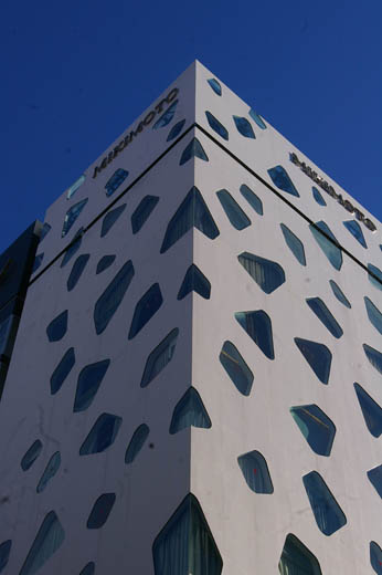 この春に表参道の現代建築群を見歩いたところ、それぞれ街の景観にとけこんでいる建築物の数々に圧倒されたものだった。銀座もまた、そのような建築群が町を飾っているというので、秋も深まる頃合いを見はからって出かけてみた。どうせ行くなら、日曜にしよう。日曜なら、銀座は歩行者天国がおこなわれていて、自動車を気にせずに、いい写真が取れるだろと思うからだ、もっとも当日は、9時半ごろから11時過ぎまで現地にいたのだが、歩行者天国にはまだ時間が早いと見え、自動車を気にしながら撮影しなければならなかった。 有楽町の駅を起点に、銀座一丁目通りを歩んで銀座通りに出、そこから新橋方面へと歩みながら、気に入った建物の写真を撮影した。新橋の駅の手前の高速道路の道を西に向かって歩き、外堀通りを有楽町方面に向かって引き返した。その間に歩いた距離は、表参道の場合より長かったと思うが、そんなには疲れなかった。 上の写真は、銀座一丁目通りと並木通りの交差点北西側に立つミキモトのビル。詳細は別途記述するが、今回の建築散歩で最初に出会った建物なので、記念の意味でここに掲げた。 銀座通るに出るころ、時刻は十時を回り、歩行者天国の準備らしいものが始まっている気配は感じたが、車が完全になくなるわけではなかった。そこで車を気にしながら歩くことになった。もっともその数は少なめなので、表参道のときのようには気を遣うことはなかった。 銀座の建築群のシンボル和光ビルは健在だった。時計台に修理用のカバーがかけられていたが、そんに邪魔にはならない。 和光の向かい側にある三愛ビルは、全体が養生用のカバーに覆われている。どうやら、全面改築されるらしい。 和光の交差点からしばらく先にあるライオンの建物もあいかわらず健在。だが一つ変わったことがおきていた。街路樹が、柳から銀杏に変わっていたのだ。誰が何時このように変えたのか。管轄する建設事務所が独断専行したのか。銀座といえば柳というのが程よい組み合わせだと思うのだが、これでは銀座のイメージが台無しだ。だいいち銀杏は巨木になるので、銀座のようなこじんまりした空間にはおさまりが悪いだろう。 並木通りの街路樹も銀杏に変わっていた。 以上は、銀座界隈を歩いてみて、まず感じたことだ。なにしろ銀座を訪れるのは十年ぶりくらいのことなので、その間に町のたたずまいもかなり変わった。建物の高さが以前より五割がた伸びたし、また意匠をこらした前衛的な建物も多く目にする。銀座は、表参道以上に、現代建築のショーウィンドウ的な雰囲気を強く感じさせる。 ミキモト銀座、V88ビル:銀座現代建築散歩 ティファニー銀座、キラリト ギンザ:銀座現代建築散歩 ルイ・ヴィトン松屋銀座店、シャネル銀座:銀座現代建築散歩 銀座トレシャス、ロロ・ピアーナ:銀座現代建築散歩 ブルガリ銀座タワー、グッチ銀座:銀座現代建築散歩 銀座プレイス、銀座小松ビル東館:銀座現代建築散歩 銀座シックス:銀座現代建築散歩 GINZA gCUBE、スワロフスキー銀座:銀座現代建築散歩 サルヴァトーレ・フェラガモ銀座本店、東京銀座資生堂ビル:銀座現代建築散歩 静岡新聞東京支社、ルイ・ヴィトン並木通り店:銀座現代建築散歩 東急プラザ銀座:銀座現代建築散歩 メゾンエルメス、アルマーニ銀座タワー:銀座現代建築散歩 |