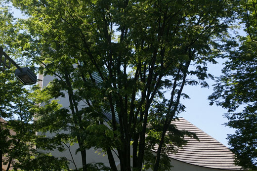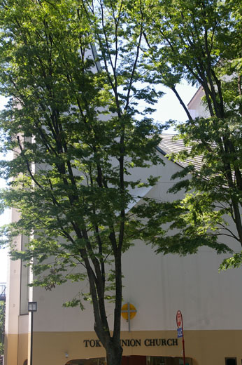 ![]() (東京ユニオン・チャーチ表参道) この風変わりな外観の建物は東京ユニオン・チャーチ。ユニオン・チャーチはプロテスタント系の協会。厳密な宗派性にはこだわらず、プロテスタントの精神を受け入れる人々には分け隔てなく解放されているとのことです。宗教行事のほか、一般のイベントにも使われるそうです。小生は内部には立ちいらなかったですが、開錠されているときには、誰でも中に入って見学できるとのこと。 設計は鈴木エドワード。丹下健三事務所の出身です。代表的な作品には、JR赤湯駅舎など、鉄道の駅舎が多い。本人のこだわりもあるのかもしれません。 ![]() これは斜め下から見上げた構図ですが、なにせ手前のケヤキの葉が繁茂していて、建物のアウトラインを隠しています。落葉の時期にじっくり見に来た方がよさそうです。 ![]() (Goro's) 東京ユニオン・チャーチから西へ向かって歩くと、通りを隔てた反対側に、レンガ色ののっぽの建物が目に入ります。建物のエントランスのところにしめ縄が飾られているので、宗教系の施設かなと思ったりしましたが、それはユニオン・チャーチの印象がそう思わせたのかもしれません。実際には、この建物は、宝飾ブランドGoro'sが入っているのです。 Goro'sとは、宝飾デザイナー高橋吾郎のブランド名です。当初は駒込でレザー・クラフトをやっていましたが、1973年にここに進出し、以後宝飾ブランドとしての名声を確立したそうです。 ![]() 建物の設計者など、建築の経緯にかかわる情報は入手できませんでした。 |