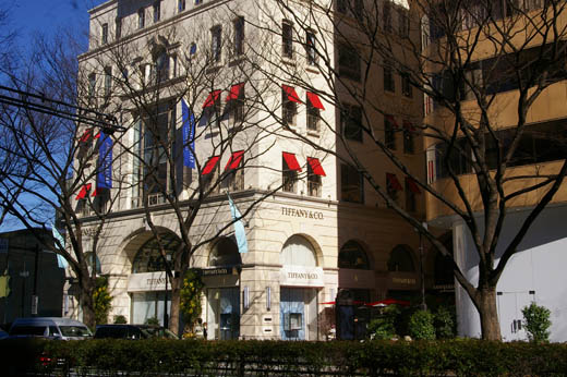 ![]() アニヴェルセル表参道は、もともと結婚式場として作られましたが、2023年にリニューアルされて、ファッション・ブランド、ティファニーが入居しました。そんなことで現在は、結婚式場というよりはティファニーのイメージが強くなっています。 建物の竣工は1998年で、清水建設が施工しました。リニューアルにあたっては、乃村工芸社がデザイン設計を主導したそうです。上の写真は、斜め角度から見渡したもの。既存の建物をベースにして、にぎやかな意匠が施されています。 ![]() これは、同じく斜め角度から、屋上部分まで見上げたもの。 ![]() これは正面からの長めです。ティファニーのイメージが前面に出ています。 ![]() (アップル表参道) アニヴェルセル表参道の向かって左側にアップル表参道の風変わりな建物が立っています。この地域にはめずらしい平屋建ての建物で、ファサード全面がガラス張りです。設計はアメリカの建築設計事務所「ボーリン・シウィスキー・ジャクソン」。アップル銀座のほか、世界中に展開するアップルストアの設計を手掛けています。竣工は2014年です。上の写真は建物を正面から眺めたもの。 ![]() これは、同じく正面から、アップルのロゴを浮かび上がらせたものです。 |
