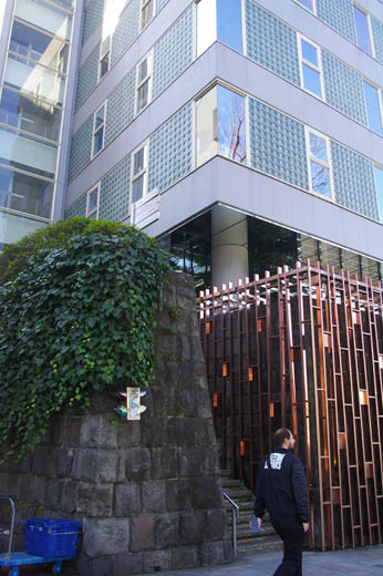 ![]() 2022年にオープンしたマックスマーラ表参道は、マックスマーラにとって表参道地区では二つ目のものです。イタリア人建築家アンドレア・トニョンの設計です。庇構造を取り入れ、その部分を流線形にすることで、躍動感を演出しています。この躍動感があるために、実際よりもそびえたつような印象を受けます。 上の写真は斜め角度から見上げたもの。庇が各階の角の部分でそり上げっています。 ![]() これは、庇の流線形がよく見える角度のものです。 ![]() これは、エントランス部分。ファッションブランドらしいシックな雰囲気です。 ![]() (エルメス表参道) 前回エルメス表参道を見た時には、かつての重厚な石垣部分が妙なものに置き換えられているのをみてがっかりしたものでした。その折は、通りを隔てた向かい側から写真をとったものでしたが、今回は間近から撮影しました。 ![]() これは、申し訳程度に残されている石垣部分の一部です。かつてはこの石垣が通りに面して連続していたものです。 ![]() これは、エントランス部分。縦じまにみえる文様は、竹林をイメージしたといいます。 |