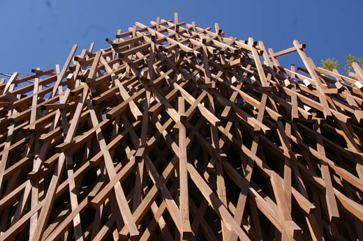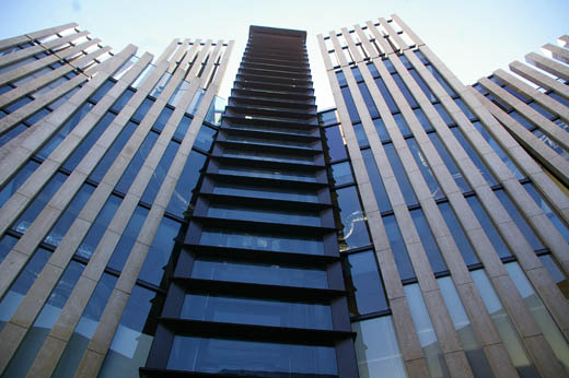 ![]() プラダ青山の東側に小道を挟んで隣接するのは「ザジュエルズオブアオヤマ」です。ファッションブランド数店などが入る複合商業施設です。きわめてユニークな外観のこの建物を設計したのは光井純&アソシエーツ建築設計事務所。竣工は2005年です。 上の写真は正面から眺め上げたもの。ライムストーンのカーテンウォールとガラスでできています。カーンウォールは構造上独立していますので、取り外しも可能です。ですから、建物の本体は、ガラスでできているといってよいです。 ![]() これは、斜め角度から眺めたもの。カーテンウォールとガラスの本体とが分離しているさまがわかると思います。ガラス越しに空が見えます。 ![]() これは入居しているファッションブランド「マッカージュ」のエントランス部分です。 ![]() (サニーヒルズ南青山) プラダとザジュエルズオブアオヤマの間の路地を北に向かって歩くと、低層の住宅が立ち並ぶ中に、かなり奇妙な建物が目をひきます。木材を組み合わせた外観の三階建ての建物です。これを設計したのは隈研吾。竣工は2013年です。 上の写真は、建物の外観です。外壁はすべて、木材の組み合わせでできています。これは地獄組みといって、伝統的な組木格子だそうです。 ![]() これは、外壁を眺め上げたもの。格子状の組木がびっしりとひしめいています。 ![]() これは、エントランス部分。微熱山岳Sunny Hillsと書いた看板が見えます。 |