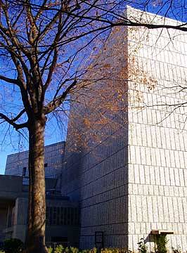 建物は公園内にあることで厳しい高さ制限を課せられ、 また周囲の景観との調和を求められています そんな配慮から、メイン部分の外観は、コンクリートの肌を利用したシンプルなデザインを採用し ところどころにアクセントとなる装飾を施しています 大ホール棟は窓のないのっぺら坊な塔のようにも見えますが 壁に白い煉瓦タイルを埋め込むことにより 清新な印象を生み出しています 建築家前川国男の代表作といわれるに相応しい造形作品です 大ホールは5層の客席を有し、音響効果にすぐれた壁面設計がなされています また舞台の下には巨大な奈落があり ミュージカルなどの上演にも強みをもっています |