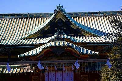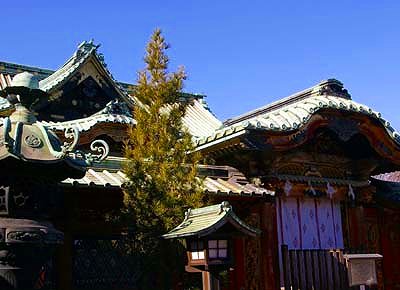 東照宮とは徳川家康を祭る神社です。日本全国にあり、とくに日光のものが有名ですが、上野の東照宮は家康の死後間もない頃に建てられ、建築市場重要な価値を持つものです。明治40年、国宝に指定されました。 最初は寛永4年(1627)秀忠の時に建てられましたが、家光の代になって大改修するにあたり、金箔塗り極彩色の華麗なものになりました。 戊辰戦争の際には、上野の山全体が火炎に包まれるなか、奇跡的に生き残り、震災や戦災も免れて、今日に貴重な姿をつたえています。 |