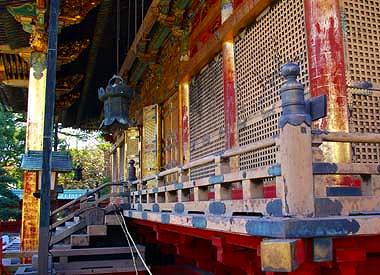 拝殿は、唐門とともに金箔を塗った金色堂でしたが 現在では大部分がはがれてしまっています |