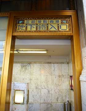 三越の装飾にはあちこちに金色が用いられています 地下鉄入口の枠にまで用いられたようです ちなみに百貨店の名称が地下鉄の駅名になっているのは東京では三越だけです |