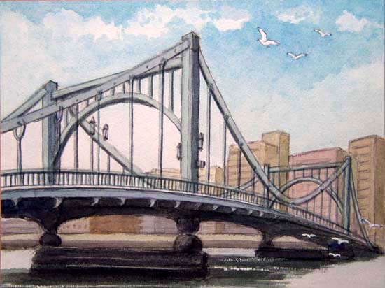 新大橋からの遠景であったが、このように間近から描くと、また違った趣に仕上がるものだ。