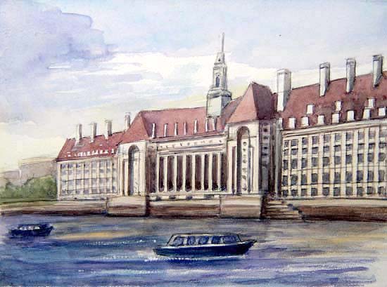 County Hall---Built for LCC, capitalfs first citywide government, in1922. LCC was succeeded by GLC in 1965, but Margaret Thatcher, the Toryfs Iron Lady, abolished it in 1986. Since then the building has been closed off and used by nobody We visited County Hall where the GLC had taken office until a few years ago. The building was locked out and nobody used it. As Takaki wanted to go to toilet, I looked around for it and found out one at a corner of West Minster wharf. On the wharf a sightseeing ship bound for Greenwich was set up for starting. Takaki wanted to get on the ship. I bought two one way tickets for us and we got on it. The ship went down the river for an hour and arrived at Greenwich. |