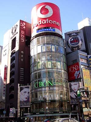 | There are many fashionable buildings along the street. Shiseido (left) is a leading company of cosmetics. The picture on the right is an outlet shop of Tasaki Pearl. The women shown there look elegant. |