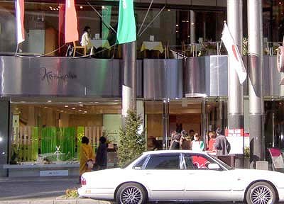 at Ginza are highly evaluated as top brands. The street was originally located next to the starting point of Tokaido, Japan's main road connecting Edo-Tokyo with Kyoto and Osaka. The name "Ginza" means the guild of silver makers because there was the guild office along the street in Tokugawa era. In 1870's the street was rebuilt into brick town as a showcase of Japan's modernization by Meiji Government. The modern brick buildings covered the street and many people gathered there to see the new townscapes. Since then Ginza became the finest shopping throughfare in Japan. Ginza area also was struck by the gerat earthquake in 1923 and set in fire by the great airraid by US in 1945. But the town was quickly reconstructed each time.Right now Ginza remains the most famous commercial center in Japan filled with expensive goods and shopping people. Some day, I walked along the street from Ginza 1-chome tube station southward to Shimbashi. The pictures below were taken at the time. |