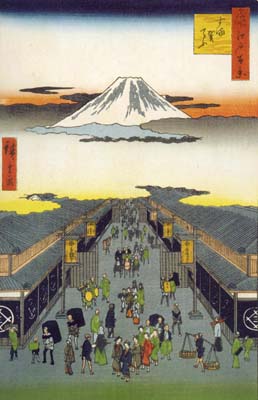 | Hiroshige painted the prosperity along the Nihombashi-tori street | ||
