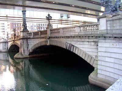 | Nihombashi bridge was constructed in 1911 over Nihombashi river. It was made of stones and decorated solemnly. But in 1960's a highway was constructed along the river covering the bridge. Nowadays the view of the bridge is not so beautiful as in the old days. |