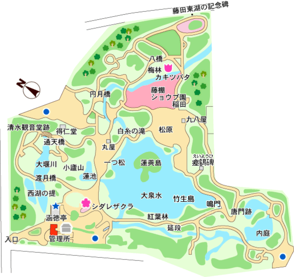小石川後楽園MAP 東京都公園協会 資料より引用 |