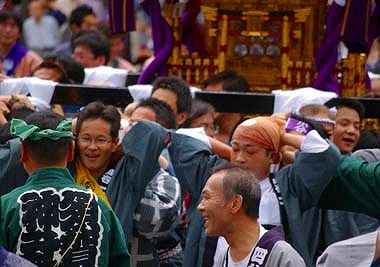 神輿は四谷1丁目から2丁目へ 無事引き継がれました