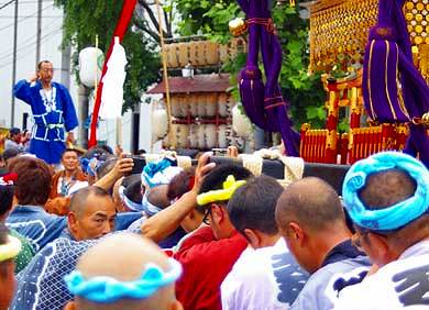 市場の衆に担がれた本社御輿は隣接する神社でのお祓いを受けると