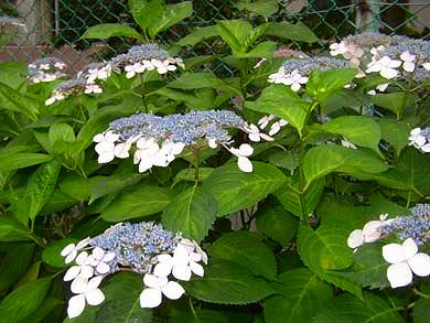 左はガク紫陽花 こんな姿の花が かつては日本の紫陽花の典型だったと思われます |