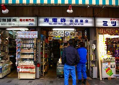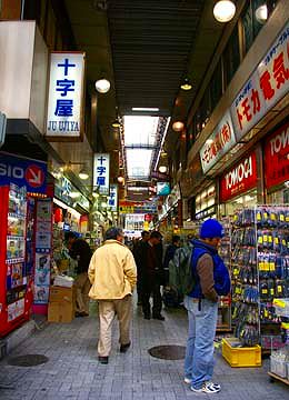 ![]() 幕末期の切絵図で秋葉原界隈を見ると、 筋違御門(現在の万世橋)の北側に、神田花房町、佐久間町、桐生町といった 小規模な町屋が連なって町人街区を形成しており それを囲んで旗本の屋敷地があり 御徒町の方向へかけては下級武士の居住区域が見られます 明治の初年火除の効用で有名な秋葉神社が勧請されて以来 秋葉が原とか秋葉っ原とか呼ばれるようになりましたが 鉄道の駅ができると次第に あきはばらという呼称が一般的になりました 秋葉原に大規模な電気街が形成されるきっかけは戦後のことでした 真空管などラジオ部品を商う露天商が秋葉原駅周辺に多く集まってきましたが それらの露天商を集めてガード下の仮店舗に収容したのが始まりです やがて小川町あたりの電気商も秋葉原駅周辺に集中するようになり 次第に電気器具の街として発展するようになりました 現在では、秋葉原駅前のラジオ会館や、中央通り沿いに多くの電気店が 軒を並べ、ここにいけば何でもそろう電気の専門店街が展開しています 最近は電気部品のみならず、IT関連のソフトや漫画産業も立地するようになり 電気街としてのイメージにとどまらない発展を示すに至っています ![]() 秋葉原駅ガード下にある秋葉原デパート 昭和30年頃に建設されましたが 近々閉鎖されるとの計画が持ち上がっているそうです ![]() 秋葉原デパートの前にはラジオ会館と呼ばれる長屋状の建物が立っています 秋葉原がラジオ部品の商店街として出発したことを物語る名称です ![]() ラジオ会館は細長い建物を幾つかに区切り 路地上の通路に沿ってこまごまとした店がびっしりと並んでいます 通称をラジカンといいます ![]() ラジオ会館内の店は、電気器具や電子部品、IT関連のパーツなどを きめ細かくそろえており 個々に来ればそろわないものはないといわれています このような人々によって ものづくり日本の土台が守られているとも いえるでしょう ![]() 秋葉原も近年変化の兆しを見せるようになりました その代表的な現象は性風俗と 漫画を中心にした新しい文化です 特にアダルトソフトを扱う店が急激に増えてきました ![]() 秋葉原には世界中から買い物客が訪れます そんな人びと向けの免税店もあちこちに見られます ![]() 中央通り沿いには大型の電気店が立地し 路地には小型の専門店や漫画喫茶がひしめいています またコスプレと呼ばれる新しいタイプの風俗産業が盛んになってきました ![]() 青果市場の跡地の再開発によって 秋葉原にも超高層ビルが進出するようになり 街全体の大きな変貌が予感されています 秋葉原 | 須田町 | 神田駅周辺 | 神保町 | すずらん通り |