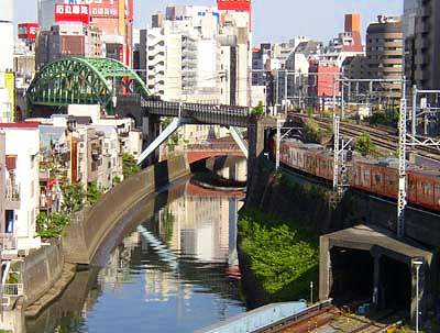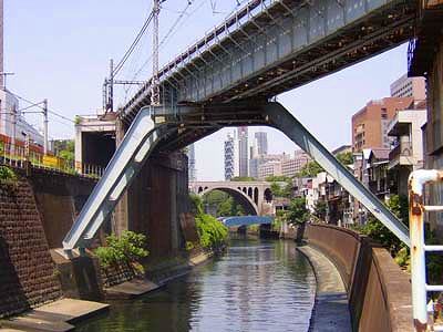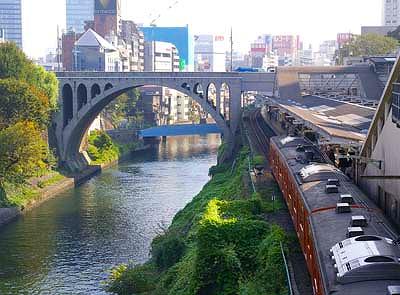 ![]() 御茶ノ水の地名には由来があります 徳川二代将軍秀忠がこのあたりに立寄った折 湧き水でたてたお茶をことのほか喜んだとされたことから この地の水を御茶ノ水といい始め それが地名にもなったという伝えです 神田川が掘削される以前のことといわれます 神田川ができると 川沿いは深い渓谷となり 園風光明媚な景色は江戸市民の目を喜ばせました ひとびとはこれを茶渓と称し 物見遊山に駆けつけたとされています 写真は御茶ノ水の駅 渓谷の縁に沿って駅舎と線路が設けられています こんな風靡な駅は東京中ほかでは見られません ![]() 昌平橋から聖橋方向を眺めた構図です 広重の絵に これと全く同じ構図のものがあります 川の両岸がコンクリートによって塞がれ 鉄橋や橋が加わっていることを除くと 川の流れるさまは 時代を超えた不変性を感じさせます ![]() 御茶ノ水駅周辺は 学生相手の喫茶店やら 手軽なレストランが並んでいます これは そのうちの一軒 なかには さまざまな飲食店が入っています 建物の形態からは むしろ風俗営業の雰囲気を感じるのは わたくしの僻目によるものでしょうか ![]() 神田川に沿って 外堀通りが走っています 聖橋とは立体交差をしているので 石段を下りてこの道にたどり着きます ![]() 右は 湯島聖堂の石垣です 広重の絵にこのあたりを描いたものがありますが 聖堂の様子は 石垣を含めて殆ど変わっていません ![]() 聖堂内の光景 大成殿から内門を見下ろしたところです ![]() 聖橋から昌平橋方向を眺めた構図 手前は丸の内線の線路 左手は総武線が外堀通りを跨ぐところに架かる鉄橋 川でなく 道路に鉄橋のアーチが架けられたのは そちらのほうが幅が広かったからでしょうか 駿河台 | 御茶ノ水 | 神田明神 | 湯島天神 | 池之端 |