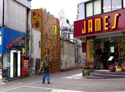![]() 表参道を明治通りの方向へ下っていくと このような 大きな建物が次々と現れます かたちからして マンションでしょうか 一階の部分は もちろん土地柄を反映して ファッショナブルな店が入っています ![]() 赤い壁のなかなかシックな色合いの建物ですね 一階はブティックですが 上のほうはマンションのようでもあります 二階の壁に貼られた女性のイラストが 街の雰囲気を引き立てています ![]() これはシュールな感じを強調した建物ですね 手前の欅が 葉を落として 背景とよく調和しています ![]() 明治通りとの交差点近くまで来ました この建物などは あまり工夫がなく かえって無骨な印象さえ与えますが それでも街の風景に溶け込んで 洒落た感じさえかもし出しているのは この街の持つ 不思議なオーラのためでしょうか ![]() 交差点近くの 明治通りと平行して走る路地です 左側のほうは皆 建物の裏側なのですが そんな風な印象にはみえません ![]() 明治通り側からみた先ほどの店です 路地は左手の背後の方にあります 原宿 | 表参道・落葉の欅 | 神宮前交差点 | 隠田通り | 表参道のブティック | 表参道起点 |