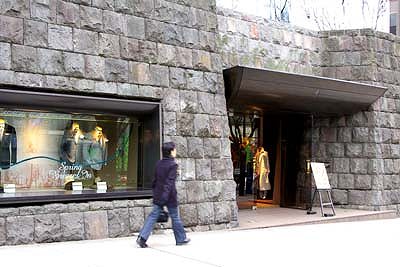 ![]() 現代的なかわった建物が目に入りました コンクリートの塀の面に 日本看護協会と記してあります 看護婦さんの団体の本部なのでしょうか こんな立派な建物を本部にしているなんて 看護婦さんパワーも たいしたものですね ![]() 看護会館にもオートクチュールが入っていました こちらはバーバリーです 今日の看護婦さんには サンローランより バーバリーのほうが 似合うようです ![]() 看護会館のある場所の正面には かつてはあの同潤会アパートの さびた色の建物が建っていました 今はすっかり更地になった土地の上に 新しいビルを建てる工事が進んでいました ![]() 石を積んで作られた建物の一階部分です ここまで来ると 通りの風情も 随分と本格的な味わいを見せるようになりますね ![]() さっきの建物を違った角度から眺めました 石垣のモノトーンと 欅の濃いセピアが 素敵な対照を演出しています 手前の街路灯も なにかしらシックな感じでしょう ![]() これはルイヴイトン バッグの王様です 写真を撮ろうとしたら 玄関番の社員らしき人に睨まれました 肖像権料を払えということなのでしょうか 原宿 | 表参道・落葉の欅 | 神宮前交差点 | 隠田通り | 表参道のブティック | 表参道起点 |