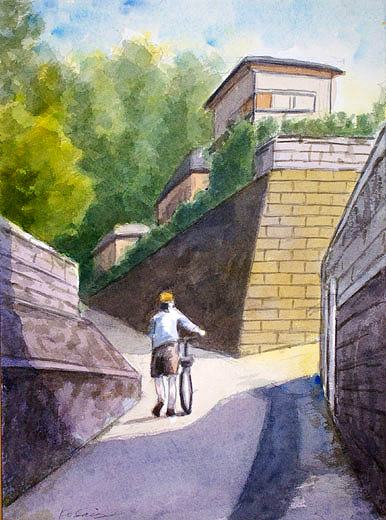 宮小路の坂(25×34cm 2005年6月)