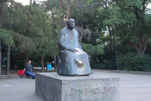 ![]() (ベルリンの宿泊先アパルトメント前にて) 平成廿九年六月十九日(月)晴。七時半に家を出で、新鎌ヶ谷北総線経由にて成田空港に赴き、九時近く第二ターミナル駅三階ロビーにて七谷、浦、岩の諸子と会ふ。ロビー内の銀行にて両替をなすに、一ユーロ約百二十八円のレートなり。チェックインしてコーヒーをすすりつつサンドイッチを食ひ、十一時近く飛行機内の座席につく。飛行機はフィンランド航空AY074便十一時発ヘルシンキ行なり。十一時十四分に離陸す。離陸後ややして左手下方に富士の頂上雲を突いて露出するを見る。その後、新潟上空にて日本海に出で、ヴラヂヴォストーク東方にてロシア大陸に入り、シベリア上空を飛び続けたり。十二時五十分頃及び十九時頃食事の提供あり。ビールと白ワインを飲みつつ食ふ。また成田にて買ひ求めし日本酒を飲みたり。 フィンランド上空に差し掛かるに、眼下に大小夥しき数の湖とそれらを囲む森林を見る。その光景たるや頗る幽邃なり。二十時五十分(現地時間十三時五十分)ヘルシンキ空港に着陸す。ここにてヨーロッパへの入国手続をなし(すべて機械式なり)、ベルリン行へ乗り換ふ。空港ロビーにて両替レートの情報を見るに、一ユーロあたり、買ひは百三十八円、売りは百七円なり。成田に比すれば手数料の割合大なりといふべし。 ヘルシンキ十七時発フィンランド航空AY917便に乗る。フィンランド時間十七時十分に離陸し、同十八時四十五分(ドイツ時間十七時四十五分)ベルリン・テーゲル空港に着陸す。空港周辺は、ベルリン市街地に接するなれど、広大な田園風景拡がり、大都市の一部とは思はれぬなり。 空港よりバスに乗り込み、ユングフェルンハイデにて環状線電車に乗り換へ、更にシューホイザーアレにて地下鉄に乗り換へ、ゼーネフェルダープラッツ駅にて下車す。アレクサンダープラッツより二つ手前の駅なり。空港よりここまでタクシーにて短時間の距離なれど、谷子が言ふには、ベルリンの公共交通を諸君に味あはしむるなりと。どの線にても切符の改札をなさず。さればプラットフォームは直接外界と接しをるなり。いささか驚きに耐へたり。 宿は地下鉄駅のすぐ近くにあり。いはゆるホテルにあらず。普通のアパルトメントを旅行客用に転用せるなり。したがってホテルらしきサービスは一切なし。単に寝るためのベッドを提供するのみなり。谷子携帯電話にて到着を告ぐるに、管理人らしき男(三十台の大男なり)現はれ、余らを寝室に案内す。かなり古びたる建物にて、外壁の損傷激しく、扉の如きは鍵も締まらぬ始末に加へ、無様に落書せられてあり。このアパルトメントに限らず、ベルリン市街の建物には落書を施さるるもの多し。 谷子の事前の心つもりにては、部屋はリビングルームのほかに四つの寝室を有し、それぞれ我々一人一人を収むるはずなりしが、実際には三つの寝室を有するばかりなり。部屋割りを相談したるところ、余と浦子にて相部屋せんとも話せしかど、岩子がリビングルームのソファに寝ねんと申し出で、その他はそれぞれ一部屋づつ占有することと決す。いづれの部屋もツインベッドを装備せり。余は二つの通りに面せる奥の角部屋を占有す。 ![]() ひと段落の後、アパルトメントを出でて付近を散策。東の方向へ進みてコルヴィッツ通りを歩み、ケーテ・コルヴィッツの旧居跡を訪ねて後、コルヴィッツプラッツに至る。ケーテ・コルヴィッツとは、谷子によれば、第二次大戦中ナチスによって迫害せられたる人々に手を差し伸べ、自らもナチスに迫害せられて大戦末期に死したる芸術家なる由。 コルヴィッツプラッツの一角にケーテ・コルヴィッツの銅像設置せられてあり。その像の傍らに姉妹と思しき少女二名遊びゐたり。上は十五歳ほど、下は五歳ほどなり。谷子彼女らに向かってケーテ・コルヴィッツを知れるや否や問ふたるところ、無論知るところなりと答ふ。しかして銅像の一隅を指差しぬ。近寄り見るに、ケーテ・コルヴィッツの足跡を記してあり。ケーテ・コルヴィッツはかかる少女にも知られをるなり。 ![]() ついでクルトゥーア・ブロイエライなるものを見物す。ブロイエライとは、中小のビール蒸留処を集約せるものにて、広大なる敷地を有す。東西ドイツ統合後一時衰退し、空家になりたるところを青年たちに占拠せられ、青年文化発信の拠点となれる由。 ![]() そこよりタクシーに乗り、谷子推奨のドイツ料理屋に行く。ホーゼマンス・シュトラーセに面せるツーア・ハクゼといふ店なり(ゼーネフェルダープラッツより北東数キロの所)。ここにて、白アスパラガス(シュパーゲル)の料理を食ふ。日本にて見るアスパラガスとは異なり、太目の牛蒡の如き外観なり。これを茹でてジャガイモを添へたるばかりの簡素な料理なれど、味なかなか美なり。ビールとワインの量進みたり。 この店を辞せしはすでに十時過ぎのことなれど、未だ日没せず。ドイツにては黄昏時が長く続く由なり。タ