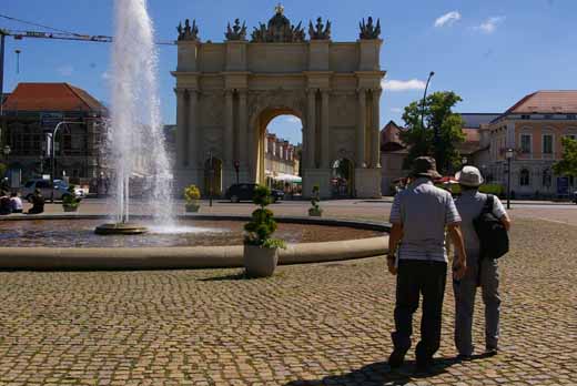 ![]() (ポツダム、サンスーシー宮殿) 六月廿一日(水)晴。昨日同様浦子の用意せる朝餉を食ふ。この日は日本より持参せしといふ即席味噌汁を添へたり。食事中何者か玄関の呼び鈴を押すものあり。谷子が応接するに、学生らしき女挨拶をなし室内に侵入す。何ごとかと思へば、自分は建築技師にて、この建物の設計図の復元作業をなしをれば、部屋の間取り等につき情報を寄せられよといふ由。谷子の解説によれば、ベルリンには戦後所有者の不明となりし建物にして老朽の進みたるものを調査し今後の利用方針を決定せんとする動きある由。さればこの調査もその一環なるべし、と。 この日、谷子は地元に住むドイツ人知人と面会する由なれば、他の三人は谷子とは別行動をなし、近郊の都市ポツダムを訪問せんとす。九時頃四人してアパルトメントを出で、ゾーネフェルダープラッツより地下鉄に乗る。車中盲導犬を見る。目つきは鋭さを感ぜしむるも、挙動は温順なり。また、犬のかはりに自転車を車内に持ち込む者あり。車内結構混雑しをれど、一向悪びれる様子なし。ドイツ人は自転車好きと聞きをれど、満員電車の中まで自転車を持ち込むとは、これ如何。日本にては考へられぬことなり。 アレクサンダープラッツ駅にて谷子と別れ、ポツダム行きのSバーンなる郊外電車に乗る(Sバーンとは快速列車の意なる由)。幸に二駅を過ぎたるところにて座席に着くを得る。その一人当たりの幅日本のそれより広し。岩子言ふ、これは独逸女の尻の幅にあはせたるなりと。思ふに、ドイツ人は男女とも体格よし。女といへども、その体格男に劣らず。余の如きは、彼女らの傍らに立てば稚児に見ゆるほどなり。しかしてドイツ女の体格の特徴は、臀部の巨大なるにあり。この臀部を以てしては、日本の電車の座席一人分にては到底足らざるべし。しかれば岩子の言ふことにも一理あり。余もまた思へらく、ドイツにては、女の尻の幅を以て座席の標準となせるが如し、と。 シャルロッテンブルグを過ぎるや、列車は森林地帯を行きぬ。ベルリン市域の緑地の豊かさを感ぜしむ。谷子によれば、ベルリン市の市域面積は七百平方キロメートルを擁し、東京よりも広大なりといふ。その大部分を緑地が占めをるやうなり。 ![]() 十時過ポツダムに至る。駅前より歩みてサンスーシー公園を目指す。最初の目標はブランデンブルク門なり。ポツダム駅北側より西に向かって進み、写真博物館の前を過ぎりて、やがて左手に湖の見えるところに大きな交差点あり。それを右してやや歩けばやがてブランデンブルグ門なり。この門は十八世紀の後半に七年戦争の勝利を記念して建てられたるものにて、ベルリンの同名の門より古しといふ。 ![]() ブランデンブルグ門を潜るに一條の通りあり。両側に洒落た構への店櫛比してあり。また通りの突き当りには古風なチャペルを臨む。その眺望は、あたかもローマのファッション通りを思はしめたり。途中小さな路地あり。そこに立ち入るに一の果物店ありて、色とりどりの果物を並べてあり。余その棚よりイチゴのうまさうなるものを買ひ求め、目抜き通りのベンチに腰掛けて浦・岩両子とともに食ふに、いささかの酸味ありてすこぶる美味なり。 突き当たりのチャペルの前を左し、道なりに行く。サンスーシーに近づく気配一向になし。ガイドブックには、駅より歩むこと二十分ほどにて到着すべしとあるに、一時間ほど歩みてもその気配なし。そのうち森林の中を迷ひ、方向を見失ひたり。このままにては埒あくべからずと、些か不安を感じたれど、周囲に人の気配もなく、ほとほと困惑したるところ、一夫人の犬を連れて散策するものを見たれば、この夫人に方向を問ひて、やうやく苦境を脱することを得たり。 ![]() サンスーシー宮殿には午後一時近くに到着す。入場切符を買ひ求めんとするに、入場制限実施せられてあり、余らは二時間後に入場を許さるべしといふなれば、入らずしてやむ。 付近の停留所よりバスに乗りてポツダム駅に戻る。途中ブランデンブルグ門の前を通過す。それを見るに、我々の先ほど通りし道は、サンスーシー宮殿とは正反対の方向に向かひて伸びたり。これを以て自覚す、余らは目標物に接近するつもりにして、実は遠ざかりゐたるなりと。 そはともかく、ポツダムの町にても、落書を施されたる建物を多く見たり。これを以て思ふに、ドイツ人の落書好きは聊か度を越したりといふべし。彼らは、平面を見ては落書する誘惑に勝てざるが如し。すなはち、建物にはペンキを以て落書をなし、人肌には刺青もて落書をなす、と。 ポツダム駅構内のベトナム風ブフェにて昼餉をなす。余はチキンカレーとライス(岡穂種なり)を主体に、淡白なる料理を選びて食ひぬ。生ビールを飲みしことはいふまでもなし。食ひ終はりて店を出でんとするに、あなたはヤーパンか、と店主より呼びかけらる。ヤーと答ふるに、店主なほ話しかけんとする様子を見せたれど、先を急ぎた