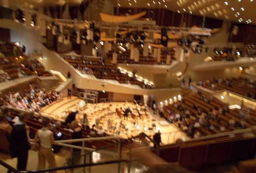 ![]() (ベルリンフィル演奏会場) 谷子に知人との面談の様子を聞くに、時間の余裕あらざれば十分とはいへざれど、そこそこ目的を達せりといふ。面談の趣旨はドイツの社会教育の現状たりし由。さても研究熱心なことなり。彼の学究ここに極まれりといふべきか。 午後四時過にアパルトメントを出で、地下鉄に乗りてポツダマープラッツに至る。この広場周辺はアレクサンダープラッツと並び、ベルリンの業務中枢地区なり。東西分裂時代には、この広場を壁横切り、分断の象徴たりしが、統合後は大規模再開発進み、いまやベルリンの中枢地区に発展せるなり。 広場周辺には多数の業務ビル林立せり。その一つにソニービルあり。ビル内に映画博物館あり。主としてドイツ映画の歴史をコンセプトとして紹介展示する施設なり。一階ロビーにて入場券を買ひ求め、エレベータに乗りて上階なるエントランスに至る。エントランス内空間すべてガラス張りの結構にて、あたかも空中楼閣の如き観を呈してあり。博物館内部に入るには、空中に浮かべるが如き橋を渡るなり。高所恐怖症気味の余としては、いささかもてあますものを感ず。そのことを以て、余は見物を中止して独り地上に戻らんと三子に申し出たれど、三子はこれを容れず。余を前後から挟み込むや、強引に橋を渡りて博物館内部に侵入せり。この際の余の恐怖、思ふべし。 このことを以て、余は世界中の高所恐怖症の諸子に向かって告ぐ。高所恐怖症の者は当施設に近寄るべからず、と。 この日のナイトライフは、ベルリンフィルの演奏を楽しむ計画なり。演奏が始まるまでの時間、ソニービル内のアトリウムにて茶を喫す。余はミルクシェイクを飲みたり。 ![]() 六時過ベルリンフィルに至る。ベルリンフィルについては、音楽の殿堂としてあまねく知られたれば贅言を要せず。一交響楽団のために専用の施設を設けたるは例少なしといふべし。かの小沢征爾もここにてベルリンフィルハーモニー楽団を相手に長期間タクトを振りしといふ。 七時より学芸員による曲目解説あり。今宵の曲目は、ドヴォルザークの吹奏楽セレナーデDマイナー、マーク・アンソニー・ターニッジの管弦楽曲リメンバリング、ブラームスの小コンチェルト曲セレナーデ第二番Aメジャーなり。いづれもセレナーデをテーマとす。今宵は、そのセレナーデの三つのバリエーションを存分に堪能せられよ、とあり。 八時過より演奏。ドヴォルザークはやや退屈、ブラームスは大いに退屈したれど、ターニッジの曲は緩急に落差あり、大いに迫力を感ず。ターニッジは現存のイギリスの作曲家なり。今宵は自ら演壇に登場して演者に謝意を表してあり。作曲家としては、自分の作品のお披露目を世界最高峰の評判高きベルリンフィルに担はるるは大いに名誉あることなるべし。 なほ、この演奏会場は、演壇を巡って四周に観客席を設けたり。そのため演者の背後にも観客の耳あり。ギリシャ劇の舞台を彷彿せしむ。音響効果のほどは知らず。おそらく特別の設計をなしをれるならむ。 演奏の終了せしは午後十時半。ソニービル内の先ほどのアトリウムなるドイツ・レストランにて夕餉をなす。アイスバインやらサケのフライなどを食ふ。アイスバインとは、豚の脛を骨ごと料理したるものにて、骨より肉をそぎとって食ふなり。油が鼻につき、すこぶる食ひがたし。谷子などは、これはドイツを象徴する料理などといひてうまさうに食ひをりしが、余は油だらけの皮の部分をもてあますばかりなりき。 地下鉄に乗るに、シュピッテルマルクト駅にて停車す。深夜保線工事のためこれより先アレクサンダープラッツに至るまでの間運転せずといふ。同乗のドイツ人客、誰一人として不満を言ふものあらざれば、これは日常茶飯のことなるべしと受け取られたり。 地下鉄会社差し回しのバスに乗りアレクサンダープラッツに至り、そこより再び地下鉄に乗り、ゼーネフェルダープラッツに戻る。時すでに十二時をまはれり。レーヴェもすでに閉店したれば、真直ぐアパルトメントに戻り、すぐさまベッドにもぐりこみたり。 |