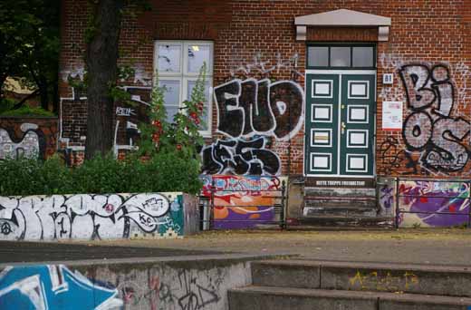 ![]() (ハンブルグ港) 六月廿三日(金)六時起床。窓外細雨煙の如し。昨日の日記を整理して後七時半、食堂にて朝餉をなす。レセプション脇の小さな食堂にて、ドイツパンと生ハム、ゆで卵とヨーグルトを供さる。入口の扉脇には新聞各紙を置きたれど、いづれもドイツ語紙にて、英字紙はなし。 八時半ホテルを出づ。この日は一日かけてハンブルグ市内を巡り歩かんと欲す。まづダムトーア駅より地下鉄に乗りランドゥスブリュッケ駅に至る。エルベ川沿ひに開かれたる港湾を臨むところにあり。 ![]() 駅よりエルベ川に至る間に一の橋あり。すなはちランドゥスブリュッケなるべし。この橋の欄干に夥しき数の鍵結び付けられてあり。そのさま、日本の神社の絵馬に似たり。絵馬といへば学業成就祈願を想起せしむれど、ここなる鍵は恋愛成就を祈願する由なり。 エルベ川の港湾施設を一望す。この港湾、川沿ひに築かれたる内陸型港湾としては世界最大の規模なり。もっとも内陸型といひても、河口に近ければ半ばは海岸型といひて不可ならず。陸地より対岸、エルベ川沿ひの港湾風景を見るに、造船所らしき施設連なり、自づから尾道の風景を想起せしむ。余そのことに言及したるところ、岩子言ふ、これはドイツの尾道なりと。 ![]() 連絡船に乗り港湾の光景を海上より眺望す。右手にはハンブルグ内地の港湾光景、左手にはエルベ川の埋立地に設けられたる港湾風景拡がり、すこぶる規模の雄大さを感ぜしむ。船上にはドイツの若者多く同乗せり。 ![]() アルトナ地区にて下船。川沿ひに歩むに、Uボートの船体海上に係留せられたるを見る。船体さして大ならず。この船に数十名の乗組員を擁し、世界の海を潜水せしとは、なかなか思ひ浮かばざるなり。 ![]() アルトナの市街を見歩く。ベルリン市街に増して落書の多きを見る。ドイツはいづこにても落書を見ざるところなきが如し。まさに落書天国といふべし。 ![]() ヘルベルトシュトラーセを歩むに、ザンクトパウリ地域なるところに踏み込む。谷子言ふ、これは独逸有数の赤線地帯なりと。地域内もっとも糜爛する場所をリーパーバーン地区といふ由。谷子路上の老人を捕へてそこへ行く道の案内を乞ふ。老人憮然としてその方角を示す。しかして、いかがはしきものを見るが如き目つきをなす。 ![]() リーパーバーン地区の入口に扉あり。解放せられたれば踏み込む。余は躊躇したれど、他の三子内部を見んことを固執したればなり。彼らの剣幕に余思へらく、好色日本老人独逸の遊郭を闊歩す、と。さる楼閣の窓に、客を引く女の影を見る。谷・浦の両子その女に引かれて近寄らんと欲す。余とっさに引き止めたり。しかして説教していはく、老人は老人らしくふるまふべしと。もっともこの女の影は人形と判明せり。 ![]() サンクトパウリ地域の一角にグロッセ・フライハイト36なる酒場あり。往年若きビートルズが演奏せる店といふ。案内書にいはく、若きビートルズのメンバー五人、1960年代の初頭に、ここハンブルグの酒場にて素晴らしき産声をあげしなりと。 ![]() この界隈に、ビートルズを模したる仕掛けを見かけたれば、それを背景に記念撮影をなしをるに、初老のドイツ女一人近寄り来る。しかして、余らに向かって微笑を向けつつ言ふ、汝らはビートルズを愛するものの如し、妾もまたしかり、と。 ![]() またタバコの自動販売機を見かけたれば、価を確かむるに、最も廉価のものにして、20本入り一箱6ユーロ60セントなり。日本のそれの倍なり。 近くにてタクシーを拾ひ、アルトナの中心市街に至り、谷子の知人が経営すといふ社会教育施設を訪問す。名称をモッテといふ。ミハイルなる初老の男性、余らに施設内を案内す。谷子ミハイルに余らを紹介するに、これらは吾輩のウニコレーゲなりと言ふ。大学時代の友人の意なり。 このモッテなる施設は、青年の社会教育を中心に、老人の社会参加活動やら幼児教育まで手がけをる由。ミハイル氏いはく、我々は二歳から九十六歳までの人間の面倒を見をるなりと。 質疑の合間に、余、谷子を通じて、独逸の街に落書の多き所以について所見を問ふ。ミハイル氏曰く、これはドイツ社会の分断を反映せる現象なり。社会の分断が若者を相互に疎外せしめ、社会全体に対するレスペクトの念を失はしむるなり。それが落書といふ形をとりて現はるるなり、と。 ついでグリートといふ初老の女性と歓談す。この女性民族間の融和をテーマにする由。しかして民族の融和は、言ふはやすく、行ふは難しと実感す、といふ。彼女のテーマは、Sound in the silence なる由。物事を探求するに声高を以てせず、沈黙のうちに確実に物事の本質を掌握すべしとの思ひを込めたる言葉といふなり。 辞去後タクシーに乗り、グローサー・ミハエル教会に至る。車内、女運転手昨日の嵐について語る。いまだかつて見聞したることなき雹を見たりといふ。昨日はタクシーもまた混雑せり。客の中にベルリンに帰れず途方にくれしものあり。