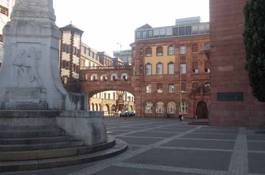 ![]() (中部ドイツの田園地帯) 列車はカッセル十四時三十七分発のチューリッヒ行なり。車窓より田園地帯の様子を見るに、麦畑と喬木の森こもごも相半ばす。喬木には幹の曲がれるもの多し。和辻哲郎の風土論には、ドイツの森林の樹木は、一様に真直ぐ天を向くとあり。その理由は、ドイツの森には強風の吹くことなきが故とありしが、ここ中部ドイツの森には、強風の吹きつけることあるにや、樹木は一様に真直ぐ天を向くことあらざるが如くなり。 また、集落は喬木の森林の影に隠れるやうにしのびやかに点在す。赤色の切妻屋根と白壁が特徴なり。田園といひ、小規模なる集落といひ、のどかな光景といふべし。 十六時十分フランクフルト着。駅前のホテル、エルシオールにチェックインす。このホテル顧客の多くが東洋人といふ。ツインルーム一泊六十二ユーロは格安といふべし。部屋にて一憩し、十七時にホテルを出づ。まず駅構内のライゼ・ツェントルムに立ち寄り、明日の切符を買はんとするに、ローカル線のこと故指定席はなし、切符は明日自動販売機にて買ふべしと言はる。 ![]() カイザー・シュトラーセを歩む。フランクフルトの目抜き通りにして、業務ビル林立す。その多くは銀行などの金融機関なり。フランクフルトは、ドイツのみならずユーロ圏最大の金融センターなり。ドイツの面白きところは、首都ベルリンにすべての機能を集中せしめず。ベルリンには政治的機能を集約せしむる一方、ビジネスの拠点はデュッセルドルフ、出版文化関係の拠点はシュトゥットガルトといふ具合に、各都市に機能を分散するなり。 ![]() やがてレーマー広場に至る。旧市街地の中心部なり。広場を囲んで、ラートハウスやら中世風の建築物建ち並びたり。最もドイツらしさを感ぜしむる眺めといふ。ラートハウスは、ハンブルグはもとより、カッセルに比較してもはるかに地味なり。 ![]() 広場よりやや隔たりたる一角に一の教会風建築物あり。ナチスの蛮行を記念せるものらしく、壁の一角にナチスゆかりの都市の名を列記せり。また、この広場の近くにはゲーテの生家を博物館として開放する施設あれど、すでに閉館したれば訪れずして止む。 ゲーテはいふまでもなく、フランクフルトにて生まれ、青少年時代の大部分をこの町にて暮せしなり。そのゲーテにフランクフルトを直接歌ひし詩は思ひ当たず。フランクフルトなる自宅の庭に生えたる銀杏の木の葉を歌ひしものの一節を思ひ浮かべぬ。次の如し これは はるばると東洋から わたしの庭に移された木の葉です この葉には 賢者の心をよろこばせる ふかい意味がふくまれています これはもともと一枚の葉が 裂かれて二枚になったのでしょうか それとも二枚の葉が相手を見つけて 一枚になったのでしょうか (井上正蔵訳) ![]() レーマー広場を去りて後、アイゼルナー橋を渡ってマイン川左岸、ザクセンハウゼン地区を目指す。アイゼルナー橋の欄干には、夥しき数の鍵結束せられてあり。ハンブルグのランドゥスブリュッケと同じ眺めなり。こちらの方が、橋の大きさに比例してより大規模なり ![]() マイン河畔には半裸の男女甲羅干しをなす。男女とも体格よし。多くの男女刺青をなしてあり。その河畔よりいま来た方角を眺め返せば、アイゼルナー橋を距ててフランクフルトの旧市街はるかに見渡されたり。大聖堂のシルエットも美しく見えたり。 ザクセンハウゼン地区の一角なる酒場ツム・ゲマルテンハウスを探す。なかなか見当たらず。数名に聞いて後、ある老人に聞くに、なつかしそうな表情を呈せらる。彼の細君日本人にして高橋といふ由。自身もかつて日本に滞在せしといふ。ドイツ人にしては小柄な老人なり。 ![]() ドイツ人の若者二人組に聞くに、共に歩みて現地まで案内せらる。休業中なり。その隣のアドルフヴァーグナーなる店を紹介せらる。銀座のライオン堂に良く似た雰囲気の店なり。アップルワインと料理数種(ビーフステーク、ポークソテー、シュニッツェル、フンガーリッシュスープ、サラダなど)を注文す。皿ごとにボリュームあり。この店、独逸風縄暖簾ともいふべし。値段はすこぶる廉価にして、メニューは豊富なり。余らの入りて後幾許もせずして、広大なる店内満員となれり。 食後駅方面に戻らんとして道に迷ふ。老女の二人組に聞くに、またもやなつかしさうな顔を呈せらる。彼女ら二十五年ほど前に日本に滞在し、石打にてスキーを楽しみたる由なり。余、小生も石打にてスキーをなせしことありと伝ふ。老女らいよいよ懐かしさうなる表情を呈せり。 十時頃駅に至る。構内売店にて水とブランデーの小瓶を買ひ求め、ホテルの部屋に落ち着く。風呂を浴び、日記を整理して後、ひとりのんびりとブランデーを舐めたり。 |