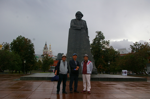 (モスクワ劇場広場前のマルクス像) 九月十三日(木)早朝四時半頃目覚む。窓外を見れば雨霏霏たり。昨日以前の日記の整理をなして後、八時に五階カフェにて諸子と落ち合ひ、朝餉をなす。ロシア風蒸しパンにソーセージの類なり。食後、持参せるタブレット端末を石子のWifiルーターに接続す。石子これを成田空港内にて調達せし由なり。ホテルWifiのPCへの接続はならず。 九時にホテルを辞し、地下鉄にてアホートニィ・リャート駅に至る。劇場広場よりボリショイ劇場を臨む。一の壮観たり。ボリショイ劇場の右手にマールイ劇場あり、その奥手にはツム百貨店あり。また、ボリショイ劇場の反対側にはマルクス像あり。近づき見るに台座に共産党宣言中の一句刻印せられてあり。すなはちいはく、プロリェターリー・フシェフ・ストラーン・サエヂニャイチェシ!(万国の労働者、団結せよ!) 像を背景に記念撮影をなす。その頃雨上り、北の空青みたり。 (赤の広場) 赤の広場に至る。中国人の姿多し。広場に臨みてグム百貨店あり。内部を散策す。三階建なり。多くは有名ブランドのアウトレットなり。石子インフォメーション嬢と会話をなすに翻訳マシーンを以てす。これは日本語の音声をロシア語に変換するものなり。石子尋ねて曰く、トイレはどこなりや、と。インフォメーション嬢、答ふるに日本語を以てす、三階にあります、と。即ち一同揃って三階に赴き小用を足す。入口に便所守の老婆ありて入場料を徴収す。排便料一度に付き三十ルーブリなり。 (グム百貨店内部) 一階は食料品売場なり。見て回るに、価一般市場に比すれば大いに貴し。キャビアなどは百グラムあたり一万二千ルーブリなり。溜息を吐きてやむのみ。 石子また先程のマシーンを用ひて一のロシア人に語りかけんとす。ロシア人手を振り色をなして拒む。蓋し、気味悪き外国人と思はれしなるべし。 (レーニン廟) この日、クレムリンは非公開日なり。ただレーニン廟は公開してあり。余ら内部に立ち入らんとして守衛に制せらる。行列に並べと。見ればはるか彼方より長大なる行列の続けるを見る。その先頭なる中国人にどれほど長く待ちゐたるやを聞くに、すでに一刻に余ると答ふ。余ら、行列に並ぶことを断念せり。 そのかはりに、ロシア歴史博物館に入る。ガイド付き見物ツアーに参加す。説明嬢は長身のロシア女性にて、陳列物をもとに事細かな説明をなす。その説明を聞くに、ロシアの英雄はイヴァン雷帝にて、ロシアはイヴァン雷帝によって国の形を築かれし由なり。説明を聞くこと一時間半、その終了を待たずに館を辞す。 アルバート通りのとあるカフェにて昼餉をなさんと、タクシーを呼ぶ。タブレット端末を用ひて、タクシーの呼び出しサービスを活用せるなり。間髪を置かずして一台のタクシー来る。車体の色はイエローにて、アプリ指定のものと同じなれば、これこそ呼べるタクシーなれと思ひ込み、是非なく乗り込む。タクシーは市街を迂回してアルバート通りに向ふ。途中プーチン・ハウスなるものあり。すなはちクレムリンのことなり。広大なる敷地にロシア風の建物立ち並びたり。 目的地に到着するや、タクシーのドライバー法外の料金を要求す。余、その額に納得せず、しばし押問答となる。ドライバー譲らず。そのうち闘争モードに入る。余らを老人のお人好しと侮りて凶行に出たるなり。余、ここにてドライバーと争ふは不都合の種にならむと思ひ、終にドライバーの要求に応じたり。しかしておもへらく、モスクワはいまだに雲助タクシー横行すなりと。 ムームーなる中国風カフェにて昼餉をなす。余、諸子に不体裁を謝す。諸子余に同情して責むることなし。余は憤慨のあまり食欲を覚えず。生ビールを飲み、薬を服用してやむ。 とてもかくても我が不甲斐なさには忸怩たるものあり。日本にてはかかるならず者にいいやうにさるることを許さざるも、異国にてはさうもいかず。されど、かかる無茶苦茶な目にあひたるは、度重なる外国旅行にして始めてのことなり。ロシア人はいまだに民度低しと思ひ知りたり。チェーホフの小説中に活躍する小悪党が廿一世紀のいまも跳梁しをるなり。 |