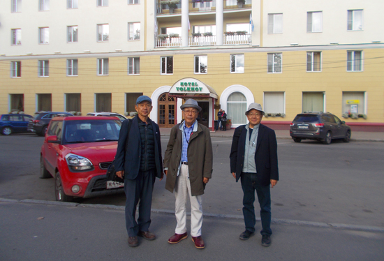 (ノヴゴロド駅に到着せる夜行列車) 九月十六日(日)六時に目覚まし時計の音に起こさる。トイレにゆき、歯をみがき、髭をそる。窓外を見るに、あたりやうやう白みはじめ、列車は白樺林の中を進みてあり。時折白樺の林に湖らしきもの景を添へたり。頗る幻想的なり。その雰囲気の微妙なること、あたかも宮沢賢治の林檎林の詩を読むが如し。 七時二分ノヴゴロド駅に到着す。列車を下りてすぐ、アフトヴァクザール(バス発着所)に赴きて、明日のサンクト・ペチェルブルグ行きバスの切符を買ひ求む。運賃一人当たり五百ルーブリ、ほかに荷物代として四十ルーブリなり。 駅近くのマクドナルドに入り、ハンバーガーを食ひて朝餉となす。店に至る手前の道路、傷み方モスクワよりもひどし。露西亜はいづこも財政難のあふりを受けて、社会資本の維持もままならぬやうなり。 (ヴォルホフ・ホテル) 美しき並木道を十分ほど歩みてヴォルホフ・ホテルに投ず。途中ブロンズ像を見る。台座にソヴィエト英雄と記されてあり。現代ロシアにはあちこちにソ連時代の遺構保存せられてあるやうなり。フロントに至るや荷物を預け、ロビーのソファに座して転寝すること二十分あまり。やや気分の爽快なるを覚ゆ。 ホテルを辞し、歩むこと十分余りしてクレムリンに至る。ここのクレムリンはロシア最古の砦にして、モスクワのそれに比すれば規模遥かに矮小なり。構内にはソフィア大聖堂などいくつかの建築物散在してあり。 (ソフィア大聖堂の鐘つき男たち) 時に十時の鐘の音聞こゆ。ソフィア大聖堂の鐘なり。音の聞こゆる方に赴くに、二人の鐘つき男、数台の鐘を操作してあり。大型の鐘よりは低い音、小さな鐘よりは高い音出でたり。両者の音色渾然と溶け合ひ、人をして恍惚とせしむるものあり。 ソフィア大聖堂の内部に入るに、時あたかも日曜ミサの最中なり。賛美歌にあはせて、人々十字を切り、また腰をかがめて礼拝す。その姿に敬虔なる気配を感ず。とくに女性は地味なサフランを頭にまき、熱心に儀式に参加す。余その姿に露西亜正教の宗教的な熱情を感じ、いささか感動するところあり。ドイツにて教会に立ち入りたる際には、人々席に腰かけて讃美歌の歌声に聞きほれてありしが、ここの人々はみな立ちたるまま説教の言葉に聞き入り、讃美歌の声に聞き惚れてあり。その讃美歌の声は独特の抑揚をともなひ、いかにもロシアの心性を感ぜしむるなり。 余の感動せるさまを、石子脇より見てあきれゐたり。石子は無神論者を標榜し、かかる儀式に心動かさるることなしといふ。余は人々の宗教感情に大いに感ぜずんばあらざるなり。 ヴォルホフ河に架かる橋を渡って、ニコリスキー聖堂に至る。内部に入るに、天井やら壁一面にフレスコ画施されてあり。特に最後の晩餐を描きしものは、芸術上の評価も高き由なり。 道を戻ってクレムリン入口近くのインフォメーションセンターに赴く。そこにてユーリエフ修道院には如何行くべきやについて聞く。眼前のバス停留所より七番バスに乗るべし、十分ほどして着くべしと告げらる。その後近くのトラットリアに入りて昼餉をなす。フォカッチャとパスタを注文し、ビールを飲む。フォカッチャには簡易ピザ添へられてあり。その量一腹分なり。岩子二腹分は食へずといってテイクアウトを希望す。すなはちウェイトレスに命じて、持ち帰り用に梱包せしむ。このウェイトレスなかなか好感をもてたり。そはともかく、余はやや眩暈を覚ゆるところとなりぬ。 |